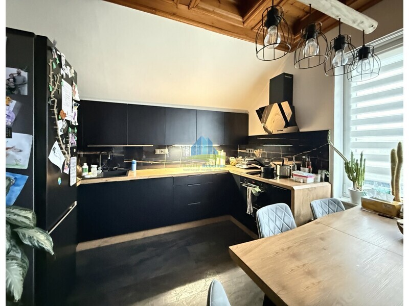 s kuchyňským koutem a velkým balkonem, ložnicí a pokojem se spacím patrem