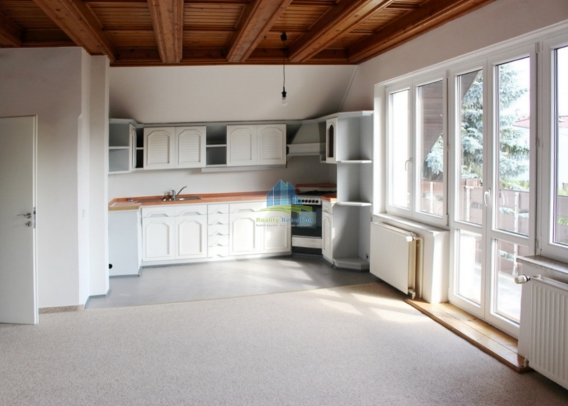 v rodinném domě. Bydlení nabízí podkrovní prosluněný obývací pokoj