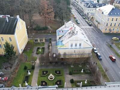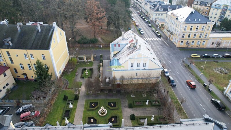 zděné zástavbě ve Francouzské ulici ve Františkových Lázních. Jedná se
