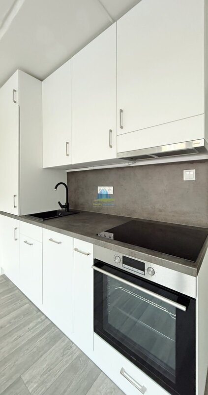 k dispozici kuch. linka, digestoř, indukční deska, el. trouba, pračka,